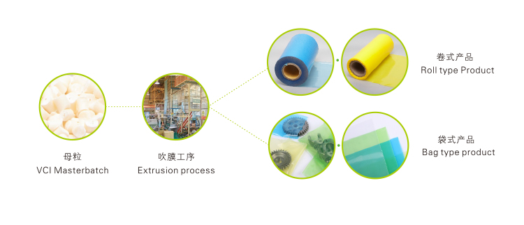 應用范圍: 適用于氣相防銹塑料薄膜類產(chǎn)品、氣相防銹熱收縮膜及氣相防銹珍珠棉的擠出吹塑加工,其他防銹塑料類制品的應用需通過工藝確定。