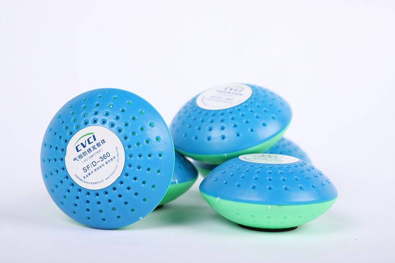 氣相防銹發(fā)散體是一種是由內(nèi)置氣相防銹劑并帶有背粘膠的多孔狀塑料殼體組成,適用于封閉空間內(nèi)特別是潔凈環(huán)境要求的金屬防銹。在常溫狀態(tài)下,氣相防銹發(fā)散體通過持續(xù)的氣化、擴(kuò)散,到達(dá)并吸附在金屬表面,形成分子級(jí)保護(hù)膜,有效地防止金屬表面銹蝕。